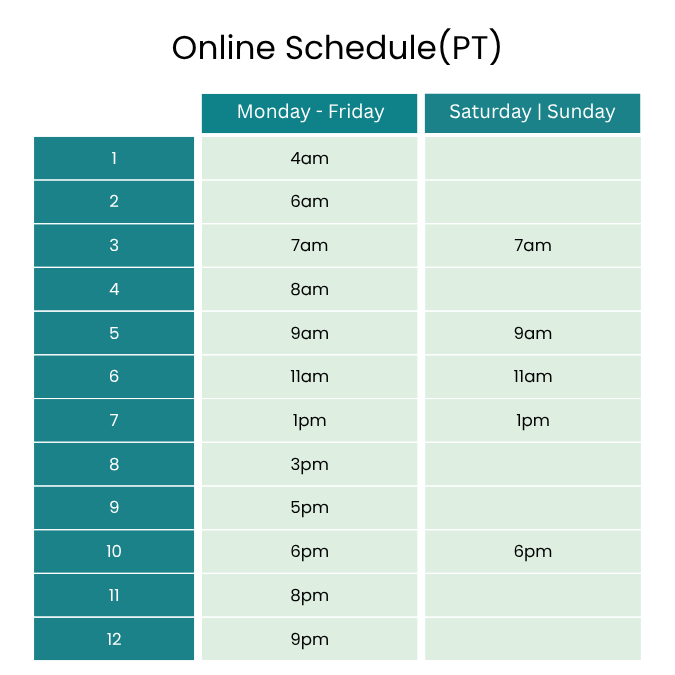 Online Schedule(Select your time zone)